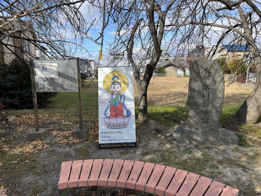 平川廃寺跡(ひらかわはいじあと)京都府城陽市平川古宮にある古代寺院跡、昭和50年(1975)11月25日に国の史跡に指定されています。(平成20年・2008に追加指定もありました)旧大和街道沿い久津川古墳群の中心付近に位置していて、赤塚古墳に接する場所にあります